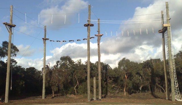 These take many forms, dynamic to static, poles to trees, stand alone, 2 poles to 20! Once you decide what kind of course you are after then you need to choose what elements you need, elements is just our terminology for the ropes, wood and cable that are built between poles or trees for the participant to traverse or ascend.